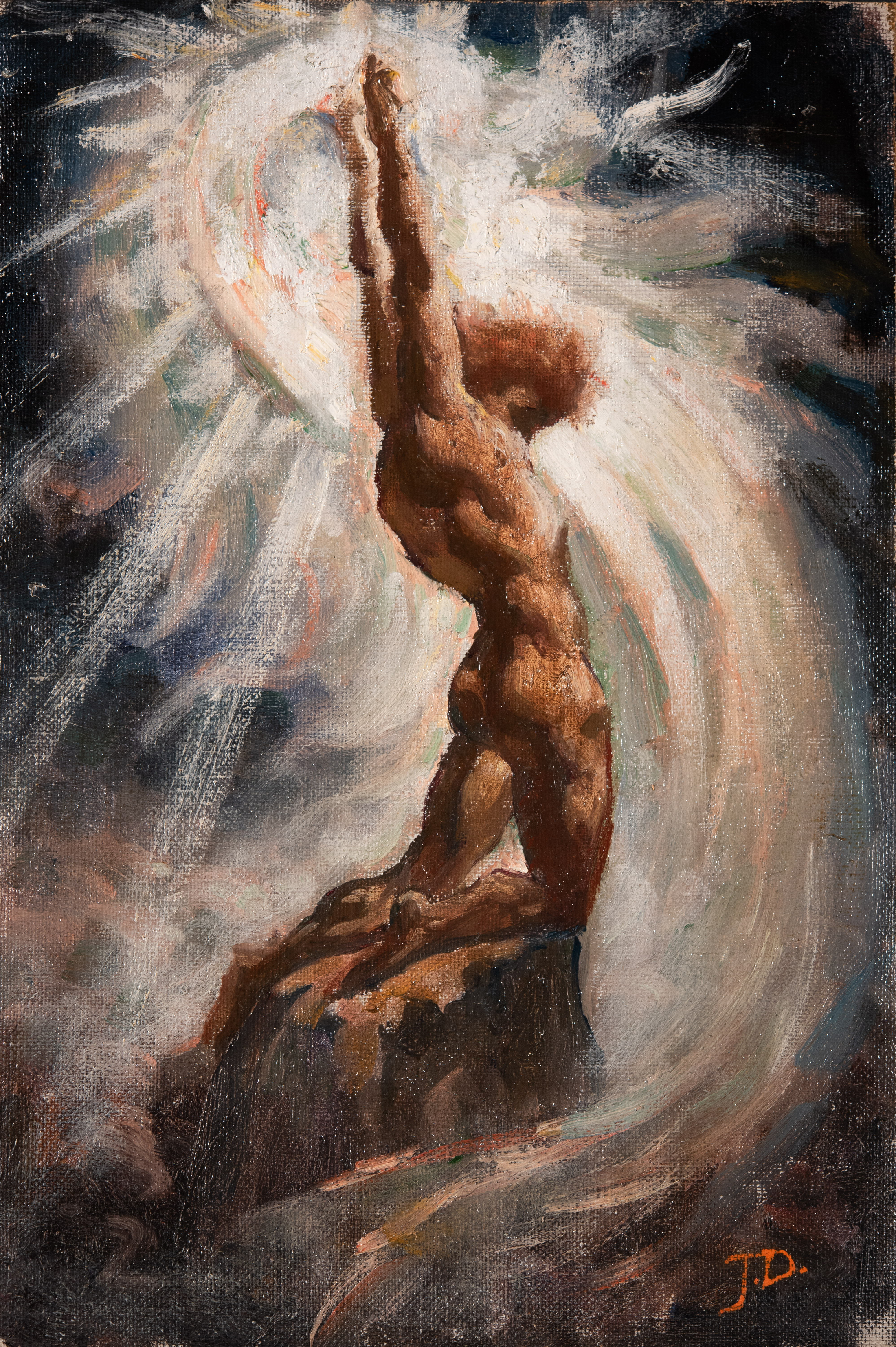 The present work, which is a new discovery, is the ‘first study’ for Prométhée, showing the prophet as a bearer of light, a visualization of the spiritual elevation of human beings, thanks to the intervention of an initiate, a superman.